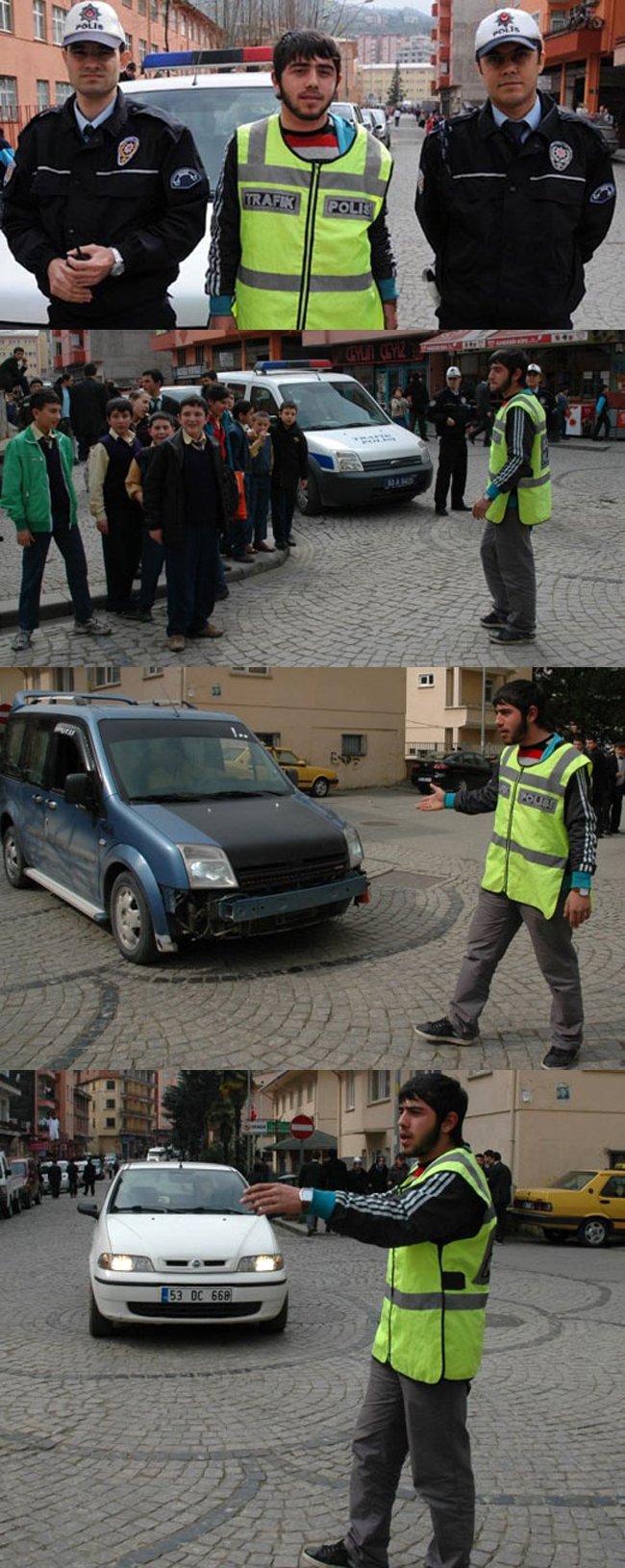 Lise 2. sınıfta eğitim ve öğretimine ara veren Murat Çepli, haftanın beş günü bir saat süreyle okullar caddesine giderek trafiğin düzenlenmesinde trafik polislerine yardımcı oluyor.