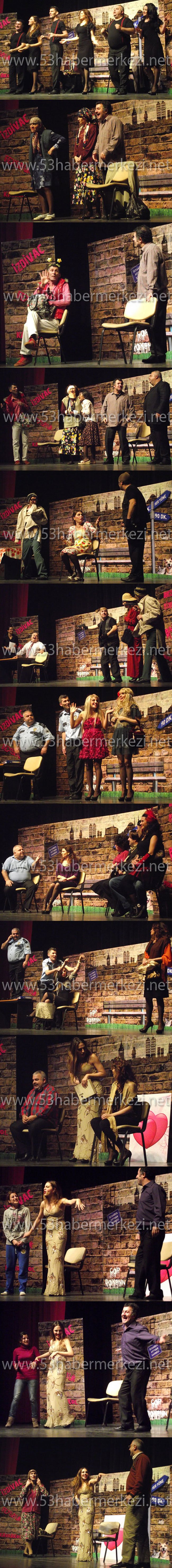 İstanbul Meydan Sahnesi tarafından sahnelenen ve Veysi Şahin'in kaleme aldığı 'Her Yöne 90 Dakika' isimli tiyatro oyunu Rize'deki tiyatro severleri 90 dakika boyunca kahkahaya boğdu.